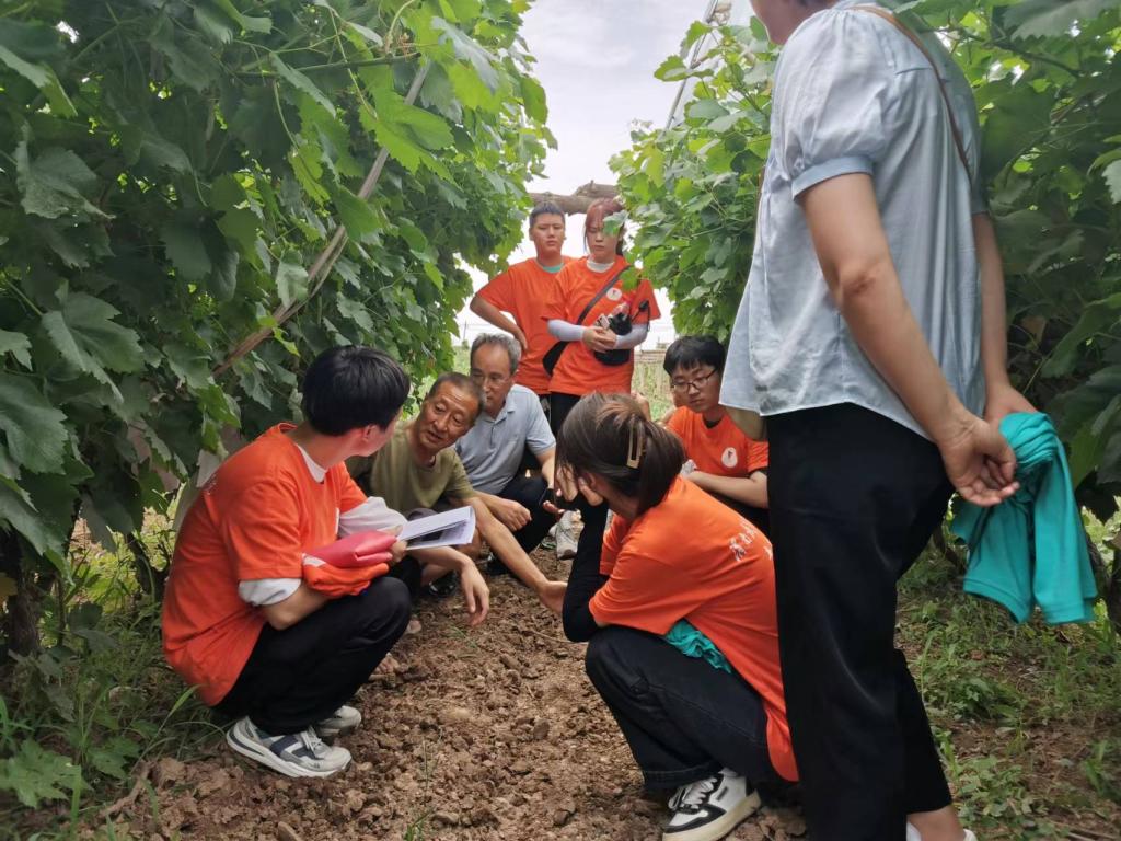 为响应《中共中央 国务院关于做好2023年全面推进乡村振兴重点工作的意见》的文件精神,把农业绿色发展摆在生态文明建设全局的突出位置,全面建立以绿色生态为导向的制度体系等要求,7月28日至8月3日,英国正版365官方网站 “乡村振兴 绿色农业”暑假社会实践团赴临渭区渭北葡萄种植区开展无公害农药和有机肥使用情况调研及病虫害防治培训指导活动。实践团队由卢鹏飞、鲁航宇、张冰欣等7名员工组成,付宏岐、杨玉娜2名实习指导教师参与,王爱娜领队。